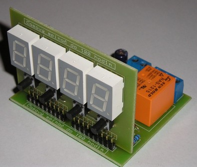 časový spínač s čtyřmístným LED displejem 14mm, napájení 12V= /70mA, výstupní kontakt přepínacího relé: max. 230V~ /10A ( možnost nastavení doby vypnutí nebo zapnutí • po nastavení potřebného času a startu je cívka relé sepnutá, po vypršení nastaveného času cívka relé se rozepne • spínač je řízen krystalem • nastavování se provádí pomoci čtyř mikrotlačítek • spínač je vybaven obvodem záložního napájení (pro akumulátor 3,6V) a jeho dobíjení )