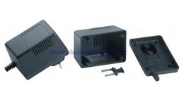 pro síť.adaptér, 90x65x57mm + vidlice pro 230V~ ( vyrobena ze samozhášecího plastu ABS UL94 V0 s platným certifikátem EZÚ splňující normu ČSN • vidlicovou část je nutno mechanicky zajistit vhodným umístěním transformátoru, plošného spoje nebo zalít hmotou • max 230V~/2,5A )