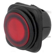 koléb. vypínač 1pól, 10A/250V AC, červený prosvětlený (LED), odolný proti působení vody a prachu (krytí IP65), max. odpor kontaktu: 50 mohm, provoz. teplota -20...85°C, rozměry: 28x28mm, průměr montážního otvoru: 24mm, tlouštka panelu: max. 4mm, konektory 6,3x0,8mm