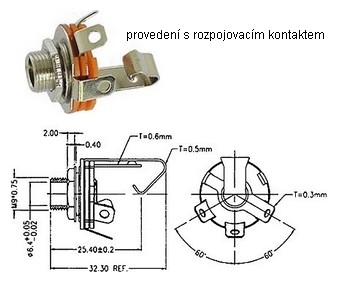 - jack mono zásuvka J6,3M-ZP-K s rozpojovacím kontaktem