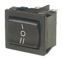 koléb.přepínač 2póly, 6 vývodů, 250V/10A černý s potisk. I-0-II