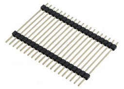 kolíková lišta 1x20 pinů, rozteč 2,54mm, k propojení dvou desek pl. spojů, zlacená, max 250V AC /3A • celková výška 38mm, vzdálenost mezi deskami 28mm