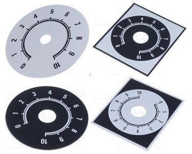 - kovová stupnice 0-10 k potenciometrům, typ 220.1xx / 220.2xx
