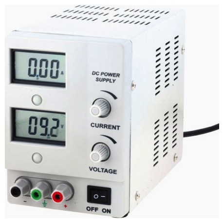 stabilizovaný laboratorní zdroj 0-18V= /0-3A ( plynulé nastavení hodnot napětí a proudu • současný odečet napětí a proudu za pomocí dvou tříapůlmístných LCD displejů • ochrana proti přetížení, ochrana proti zkratu a ochrana před připojením napětí opačné polarity k výstupu • stabilizace napětí: <0,01% ± 1mV, stabilizace proudu: <0,2% ± 1mA, zvlnění a šumy napětí (regulovaného): <1mVrms • výstup šroub.svorky či na banánky • napájení 230V~ /50/60Hz • rozměry 206x153x110mm, 4kg )
