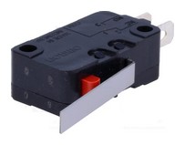 mikrospínač, přep.kontakt 16A/250V~ (30V=/10A), s páčkou 27mm, vývody pájecí, fastony 4,75x0,5mm