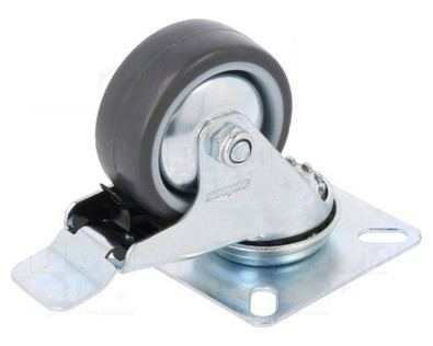 pojezdové kolečko ¤ 50mm, otočné s brzdou, šíře kolečka 20mm, výška 68mm, zatížitelnost 40kg, kluzné ložisko, podstavec 60x60mm pro upevnění 4 šrouby