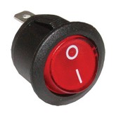 kolébkový spínač bez aretace, tlačítko OFF-(ON), červená doutnavka 230V, zatížitelnost kontaktu při odporové zátěži: 250V~/6A či 12V=/20A • pro otvor v panelu 20,2mm, max. tlouštka panelu: 3mm • konektory faston 4,8x0,8mm • použití do prostředí teplot: -20 ...85°C