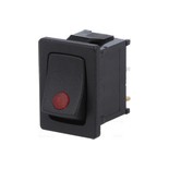 koléb.vypínač 1pól, 12V= /16A, červená LED indikace, rozměr montážního otvoru 19,8x13mm, tl. panelu max. 3mm, použití -20 …+85°C